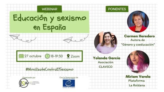 Estarán con nosotras las expertas Carmen Heredero, autora del libro «Género y Coeducación» (2019); Yolanda García, vicepresidenta de la Asociación CLAVICO, y Miriam Varela, coordinadora de la Plataforma La Roldana.