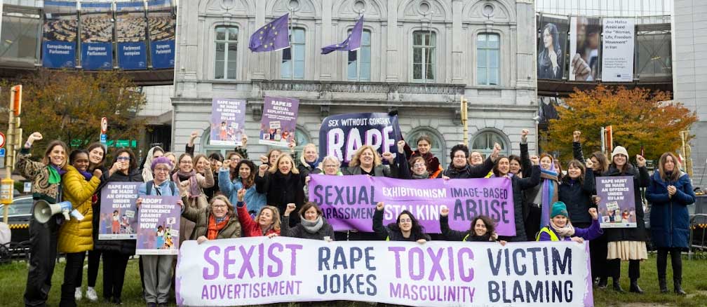 El equipo negociador del Parlamento Europeo consiguió reforzar las disposiciones sobre prevención para incluir medidas destinadas a abordar las causas profundas de la violencia contra las mujeres y la violencia sexual y garantizar el papel central del consentimiento, que debe darse voluntariamente. «El EWL lamenta profundamente el bloqueo por parte del Consejo de muchos aspectos clave de la Directiva, especialmente la escandalosa decisión impuesta por Francia y Alemania de suprimir el artículo 5 sobre la definición armonizada de violación basada en el consentimiento según las normas del Convenio de Estambul. Es completamente hipócrita y una terrible oportunidad perdida para proteger a las mujeres y las niñas de una de las formas más atroces de violencia», afirma Irene Rosales, responsable de políticas y campañas del EWL. «Recordemos que 11 Estados miembros de la UE siguen manteniendo definiciones inadecuadas de violación basadas en la fuerza, la amenaza o la coacción como principales elementos constitutivos del delito, poniendo en peligro la protección efectiva de la autonomía sexual del individuo, según la sentencia del Tribunal Europeo de Derechos Humanos». El EWL también lamenta la exclusión de las definiciones de los delitos de acoso sexual en el lugar de trabajo y esterilización forzada.